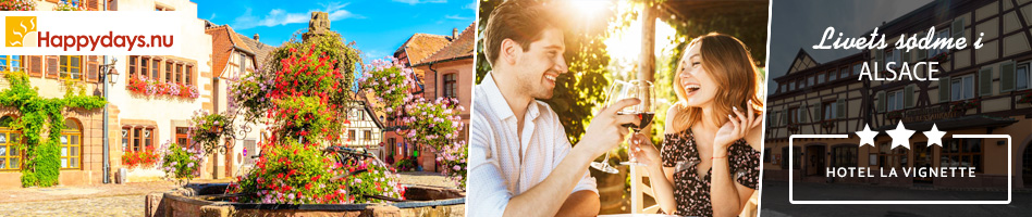 Oplev livets sødme i Alsace med en 4, 6 eller 8 dages kør selv-ferie på 3-stjernet hotel i Saint-Hippolyte, Alsace, Frankrig. På Alsaces berømte vinrute venter en ferieoplevelse ud over det sædvanlige, hvor I virkelig kommer til at fornemme det autentiske Frankrig.